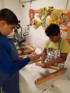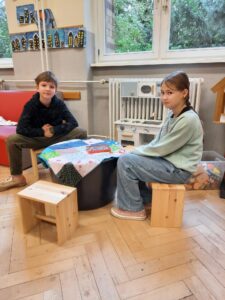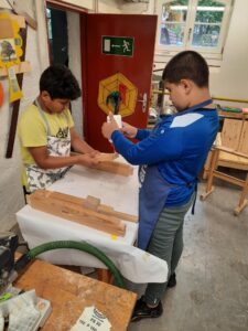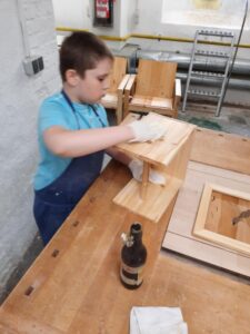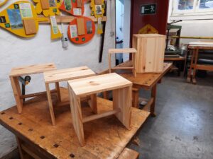 Die Billihocker werden fertiggestellt und werden zum Sommerfest ausgestellt
