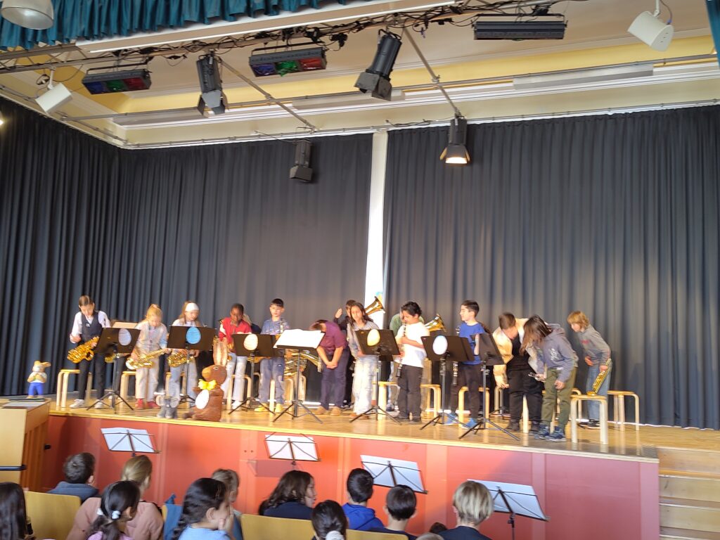 Nach wochenlangem Proben hatte die große Bläserklasse beim Frühlingskonzert einen tollen Auftritt. Trotz anfänglicher Aufregung haben sie nicht nur einen, sondern zwei souveräne Auftritte an einem Tag gespielt!